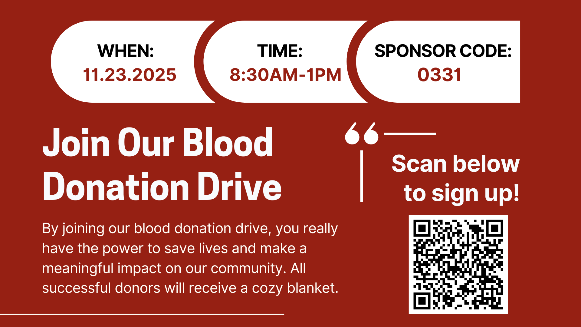 We are thrilled to partner with our friends at the Gulf Coast Regional Blood Center! On November 23, First Pres will be hosting a blood drive from 8:30AM - 1PM. Your donation can save three lives! All successful donors will receive a free cozy blanket!