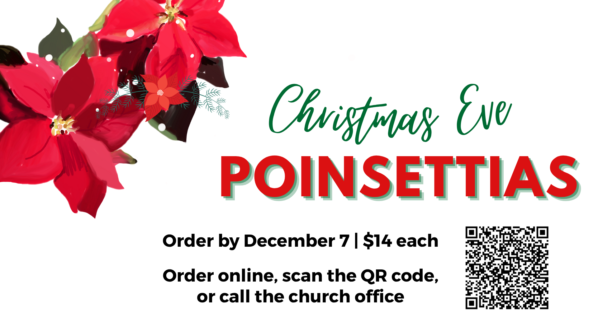 Help adorn the Sanctuary on Christmas Eve with a Christmas poinsettia. If you would like, you can order your poinsettia “In Memory” or “In Honor” of a loved one. Each plant is $14. To order, call the church office or order online using the button below.
