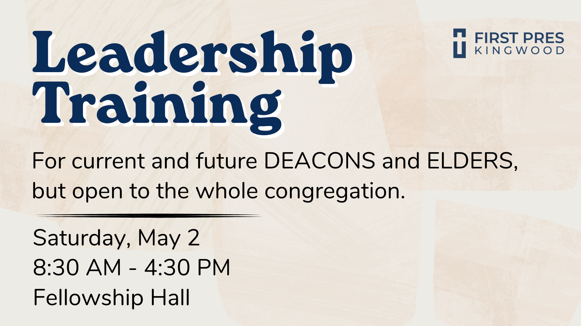 Join us on Saturday, May 2 from 8:30 AM - 4:30 PM for our upcoming Leadership Training, a special day designed to equip and prepare our Elders, Deacons, and newly nominated leaders for faithful service.